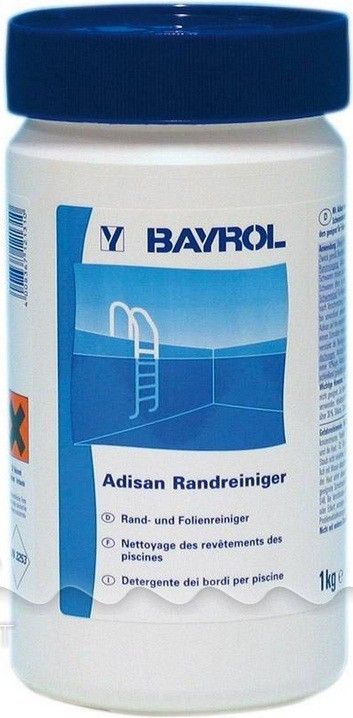 Очистка покрытия бассейна после слива: Адисан наносится на влажную поверхность и бассейн очищается щеткой и тщательно промывается. Теплая вода усиливает очищающий эффект. Очистка перекрытия плавательного бассейна: перекрытия и потолок моются 10%-ным раствором Адисана (1 кг на 10 л воды). По окончании тщательно ополаскивается. Для материалов, неустойчивых к щелочам, Адисан непригоден.