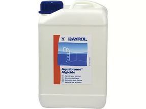 Аквабром альгицид уничтожает рост водорослей в плавательных бассейнах. Он не содержит хлора, не дает пены, особенно приспособлен к устройствам бассейна с противотоком и специально приспособлен для ухода за водой таблетками Акваброма. Состав: содержит катионный полимер.