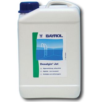 Жидкий концентрат Альгицида. Дезальгин предотвращает рост водорослей в плавательных бассейнах, помогает удалить вещества, обуславливающие мутность воды и делает воду в бассейне прозрачной. Он не содержит хлора. Состав: содержит специальную смесь четверичного и поличетверичного соединений аммония.