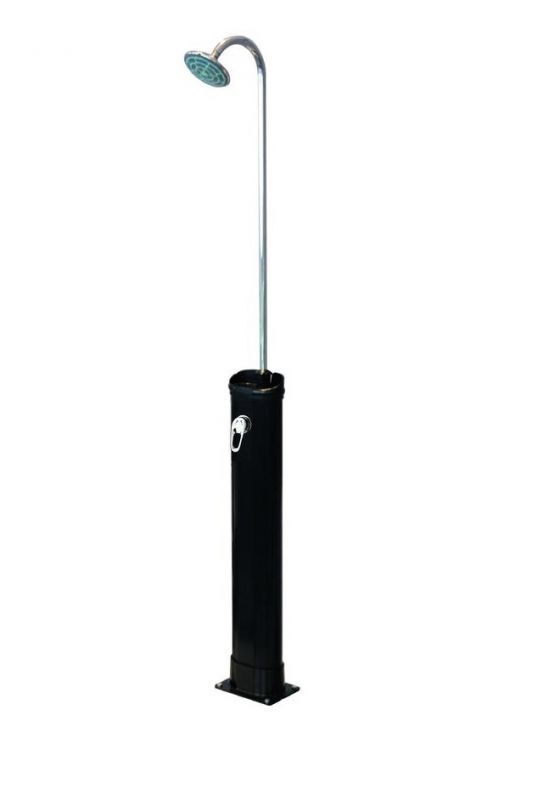Душ предназначен для использования на открытом воздухе. Вода поступает через подключенный поливной шланг, а нагревается за счет солнечной энергии, что позволяет экономить до 100% энергозатрат.