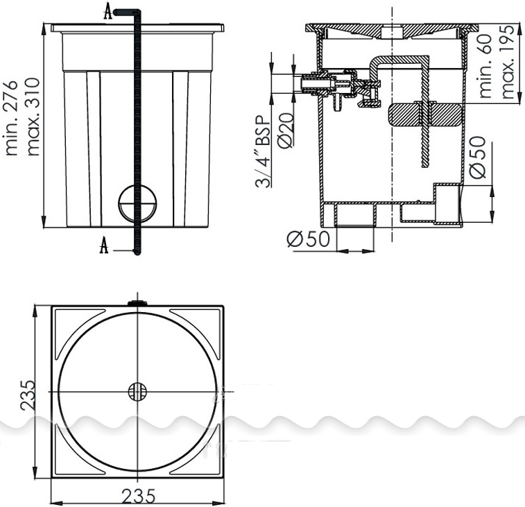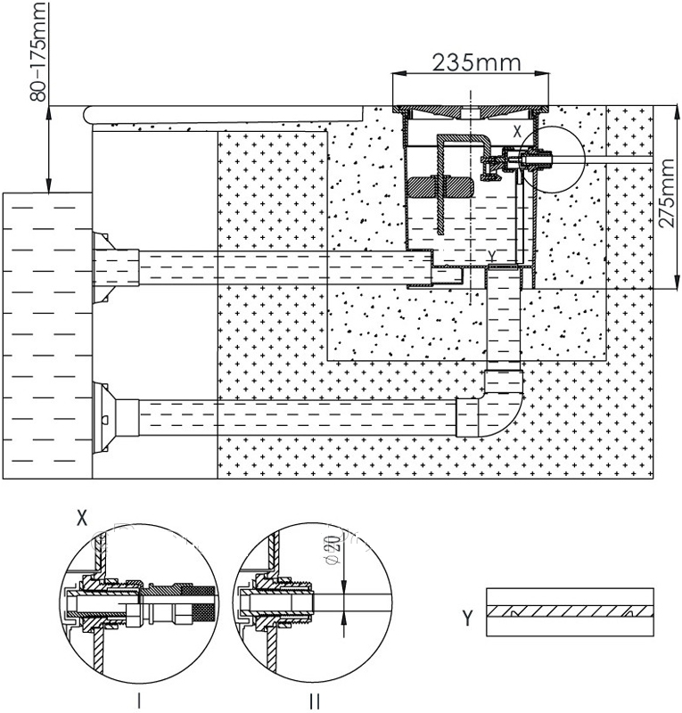 Диаметр подсоединения отводящего трубопровода: под вклейку 50 мм