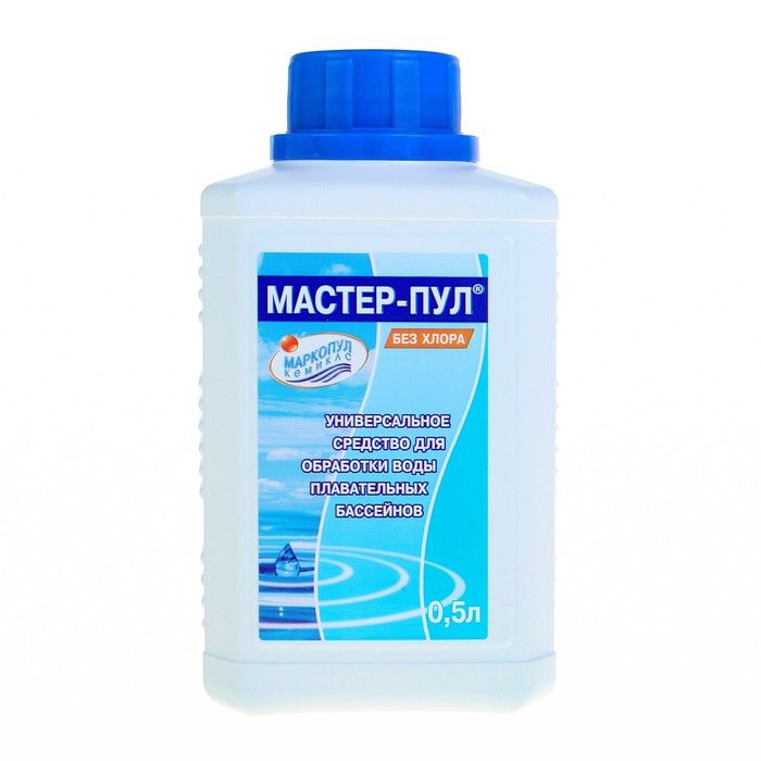 Маркопул Кемиклс бесхлорное средство Мастер-пул жидкое 4 в 1, флакон 0,5 л. - универсальное жидкое средство «4 в 1» для комплексной обработки воды плавательных бассейнов. Дезинфекция воды: использование препарата позволяет быстро и эффективно уничтожать широкий спектр патогенных микроорганизмов (бактерий, вирусов, грибов). Борьба с водорослями: препарат содержит вещества, предотвращающие рост водорослей в воде бассейна на длительное время.