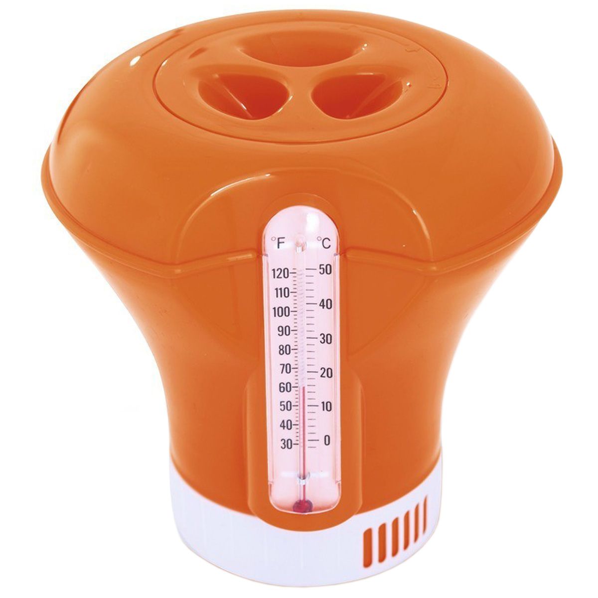 Большой плавающий дозатор с термометром от производителя Kokido предназначен для простой дозировки таблеток хлора и брома. Оснащен встроенным термометром, что делает дозатор удобным и практичным. Также дозатор изготовлен из пластика, стойкого к ультрафиолетовому излучению. Устройство дозирования позволяет добавлять в воду столько веществ, сколько требуется.