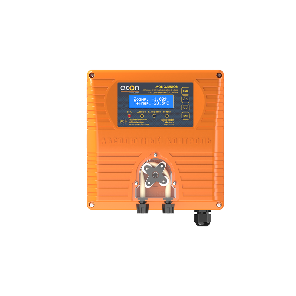 Универсальная станция химической дозации любых видов химии для плавательных бассейнов объемом от 1 до 250м3. С одним перистальтическим дозирующим насосом, производительностью 2,2л/ч.