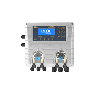 Универсальная станция химической дозации для контроля и поддержания рН (Водородный показатель) и окислительно-восстановительного потенциала (ОВП) Rx воды плавательных бассейнов объемом от 1 до 250м3. С двумя перистальтическим дозирующими насосами, производительностью 2,2л/ч. Возможно назначение второго дозирующего насоса на любой вид химии для плавательного бассейна (по умолчанию: 1 – рН (не переназначается), 2 – Cl (гипохлорит натрия)).