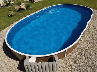 Монтаж бассейна производится за несколько часов и не требует профессиональных инструментов и навыков. В отличии от надувных,каркасные бассейны являются наиболее прочными и надежными. Бассейн можно не разбирать на зимний период времени - усиленный каркас это позволяет. Он изготовлен из стали, покрытой шестислойной защитой, которая предотвращает появление коррозии. Внешняя сторона стенки окрашена под дерево, внутри находится пленка мраморного цвета (голубой фон с мраморными отливами).