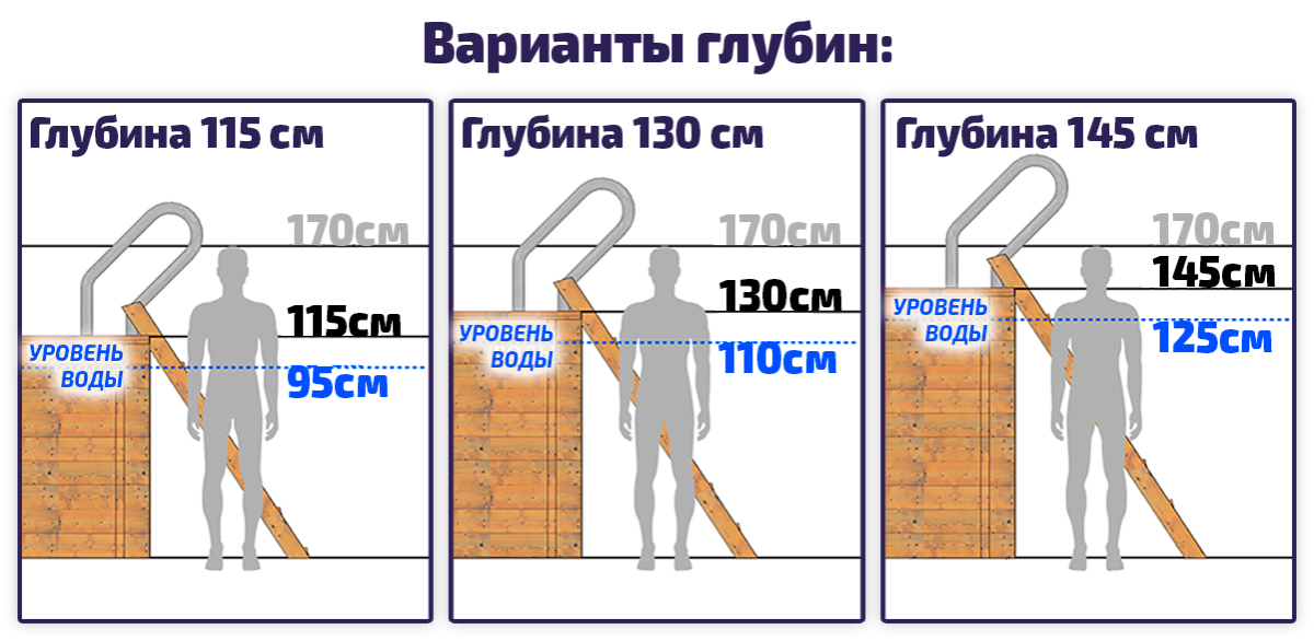 - Варианты глубины: 115/130/145 см