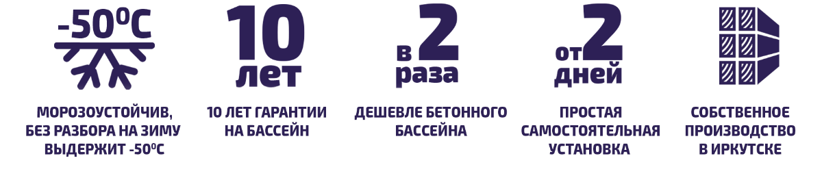 Гидроизоляцию чаши обеспечивает склеенный армированный пакет из ПВХ пленки. Пленка ПВХ толщиной от 0,6 мм обладает противоскользящим эффектом, безопасная, устойчива к ультрафиолету, истиранию, легко чистится. Благодаря своим свойствам, пленка переносит отрицательные температуры - снимать ее на зимний период не нужно.