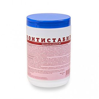 Препарат «Контистабил-» предназначен для понижения значения уровня pH воды в аквапарках и плавательных бассейнах. Состав: жидкость - антикоррозионные добавки, водный раствор неорганической кислоты (основное вещество не менее 34%), гранулы - гидросульфат (натрия бисульфат), содержание основного вещества должно быть не менее 95%.