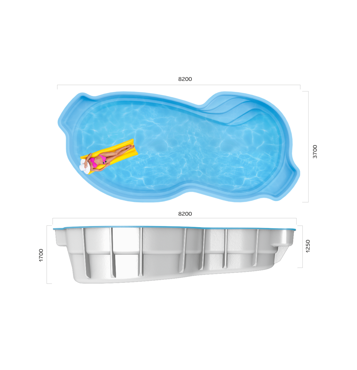 Новая модель бассейна настоящая икона американского стиля. В этом бассейне продумано всё для расслабляющего и в то же время активного отдыха. Удобные диванчики по бокам бассейна, подарят Вам незабываемые минуты спокойствия, отдыха и наслаждения, не выходя из воды. А просторная плавательная зона, вызовет восхищение у любителей заниматься спортом, здесь можно смело поиграть в волейбол с семьей и друзьями.