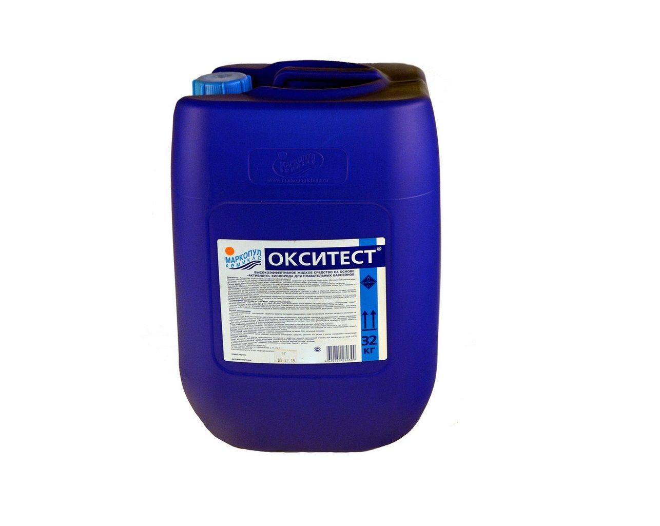 Жидкий ОКСИТЕСТ (канистра 30 л) - дезинфекция воды на основе активного кислорода Это средство надежно, легко и безо всяких запахов придают воде свежесть и чистоту, является эффективными обеззараживающими препаратом. Состав: содержит 35% пероксида водорода, четвертичные соединения аммония.