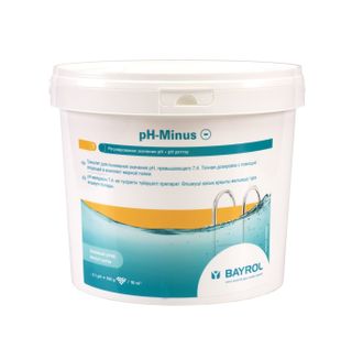 Для поддержания оптимального значения рН воды в бассейне 7,0-7,4 необходимо 1 - 2 раза в неделю проводить измерения контролирующим прибором и соответственно корректировать состав воды. рН-значение выше 7,6 должно быть снижено до 7,2 добавлением рН-минус. Для снижения рН на 0,1 необходимо 100 г на 10 куб.м.